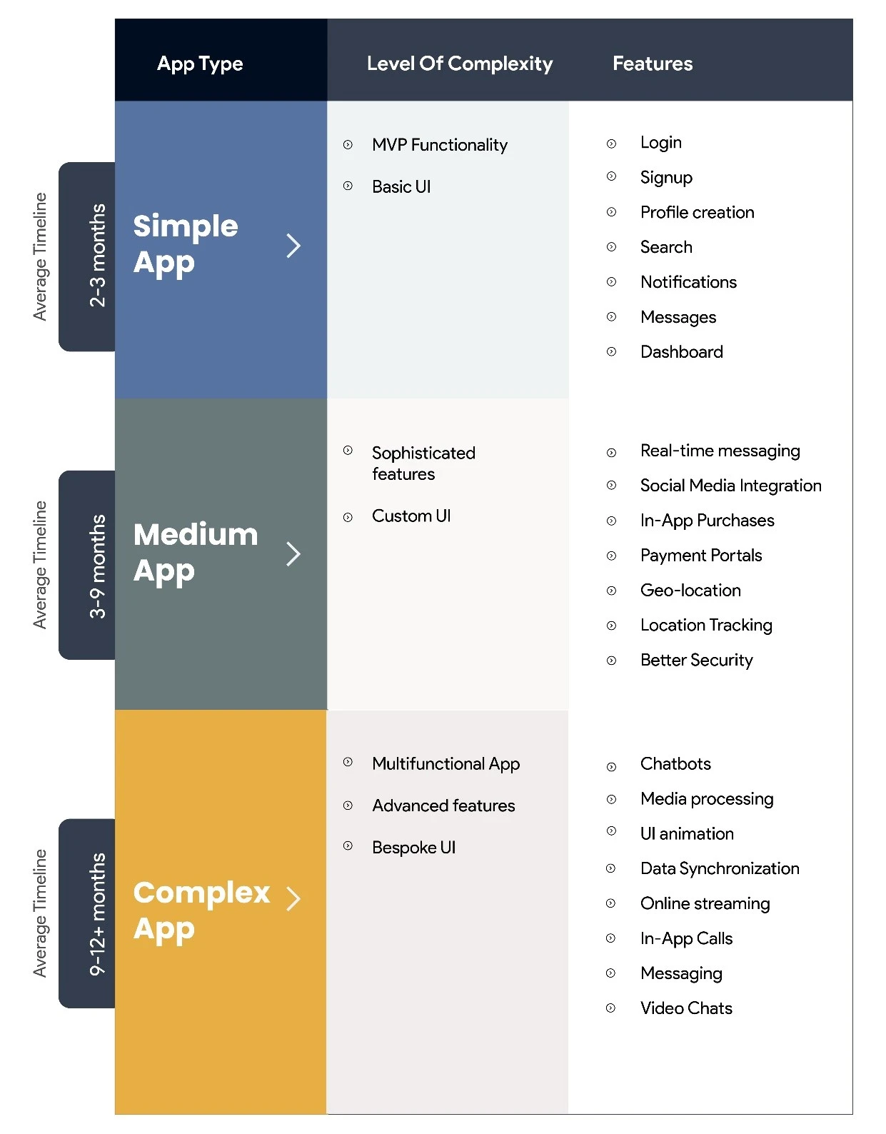 As businesses look to develop an app that meets their unique needs, they often require a range of functionalities and integrations to create a complete solution. However, each feature and integration can add to the complexity of the app and the time it takes to develop it. As a result, the complexity level of an app impacts its development cost.